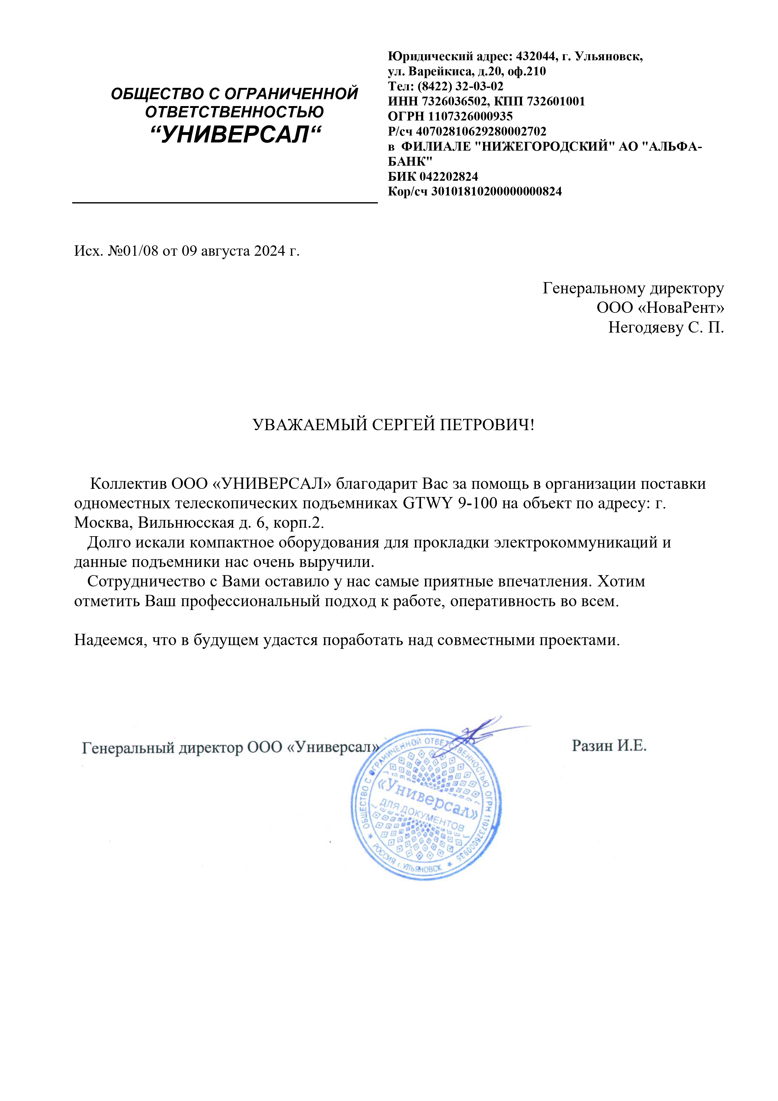 Оборудование должно быть возвращено в том же технически исправном состоянии, в котором оно было передано на объект.