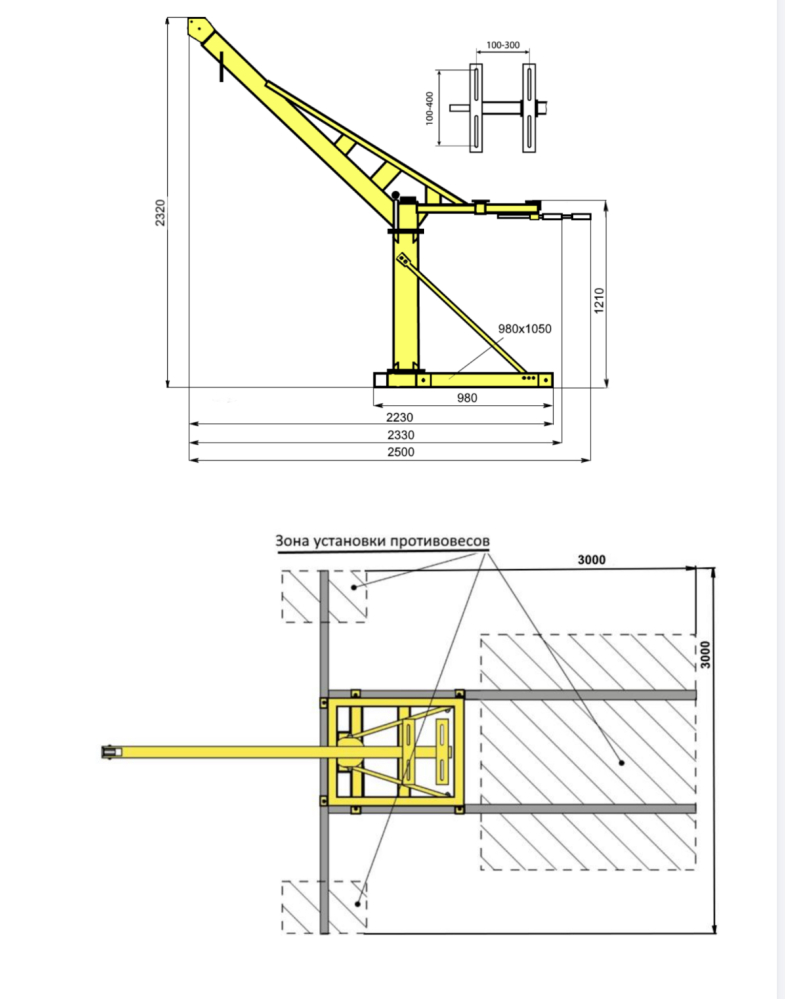 | Вылет крюка,м | 1,3 |